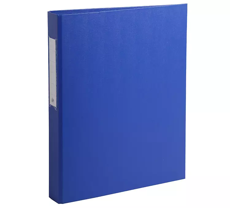 Rengaskansio A4 koon dokumenteille Mekanismi: 2 rengasta (koko 25mm). O-rengas. Selkämys 40mm. Etiketin pidike selkämyksessä. Koko 320x25,5mm. Kapasiteetti 230 A4 (80g) arkkia. Materiaali polypropeeni. Laatikossa 10 kansiota. Väri sininen. FSC Mix 70%.