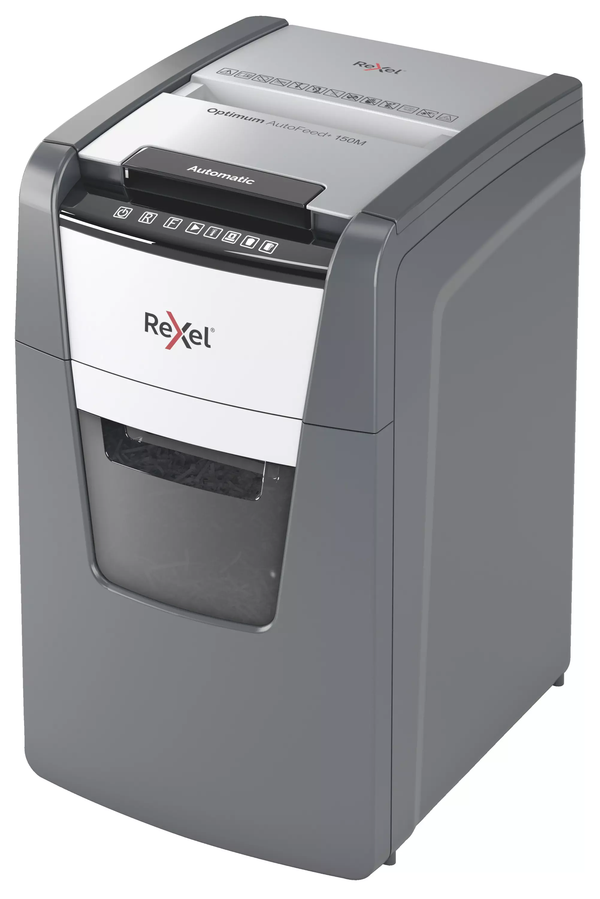 Rexel Optimum AutoFeed 150M paperintuhooja Optimum AutoFeed 150M paperintuhooja silppuaa maksimissaan 150 arkkia (80gsm) kerrallaan P5 (2x15mm) micro cut silppua. 44 litran ulosvedettävä säiliö tekee tästä tuhoojasta täydellisen toimiston käyttöön. Ei manuaalista paperinsyöttöä tai niittien ja paperiliittimien poistamista, tämä automaattinen paperintuhooja tekee kaiken työn puolestasi.Rexel Optimum AutoFeed 150M paperintuhooja Optimum AutoFeed 150M paperintuhooja silppuaa maksimissaan 150 arkkia (80gsm) kerrallaan P5 (2x15mm) micro cut silppua. 44 litran ulosvedettävä säiliö tekee tästä tuhoojasta täydellisen toimiston käyttöön. Ei manuaalista paperinsyöttöä tai niittien ja paperiliittimien poistamista, tämä automaattinen paperintuhooja tekee kaiken työn puolestasi.