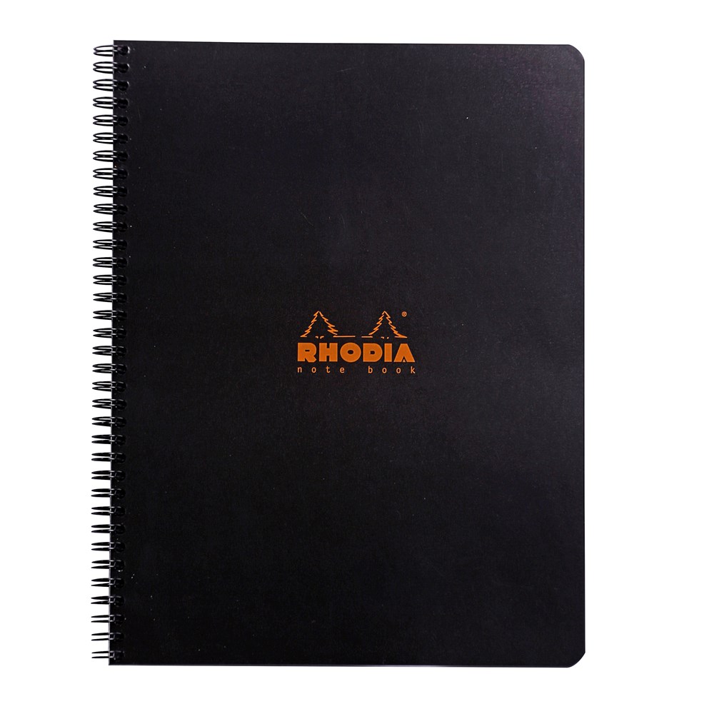 Rhodia Classic NoteBook kierrevihko musta A4+(21x31,8 cm). 80 sivua, viivoitettu. Pinnoitetut kannet, kannet täysin vedenpitäviä ja joustavia. 80 g erittäin hienoa valkoista Clairefontainen paperia. Marginaalit reunoilla.