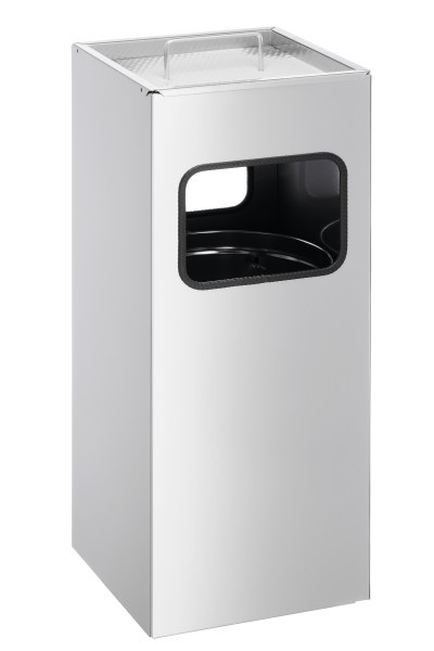 Toimiva 17 litran metallisäiliö, jossa 2 litran tuhkakuppi ja 2 sivuaukoa, jotta niitä olisi helppo käyttää. Irrotettava sisäsäiliö ja tuhkakuppi helppoa puhdistamista ja turvallista jätteiden hävittämistä varten. Soveltuu sisäiseen tai suojattuun ulkoiseen käyttöön. Sisältää teräslangan ja 1,5 kg hopeahiekkaa tuhkakuppiin. Ihanteellinen tupakointialueille ja sisäänkäynnille. Mitat irrotettava tuhkakuppi (H x Ø): 50 x 240 mm. Mitat paperiaukko (PxL): 130 x 180 mm. Mitat sisäsäiliö (H x Ø): 380 x 220 mm. Tuotteen mitat (H x Ø): 620 x 250 mm.