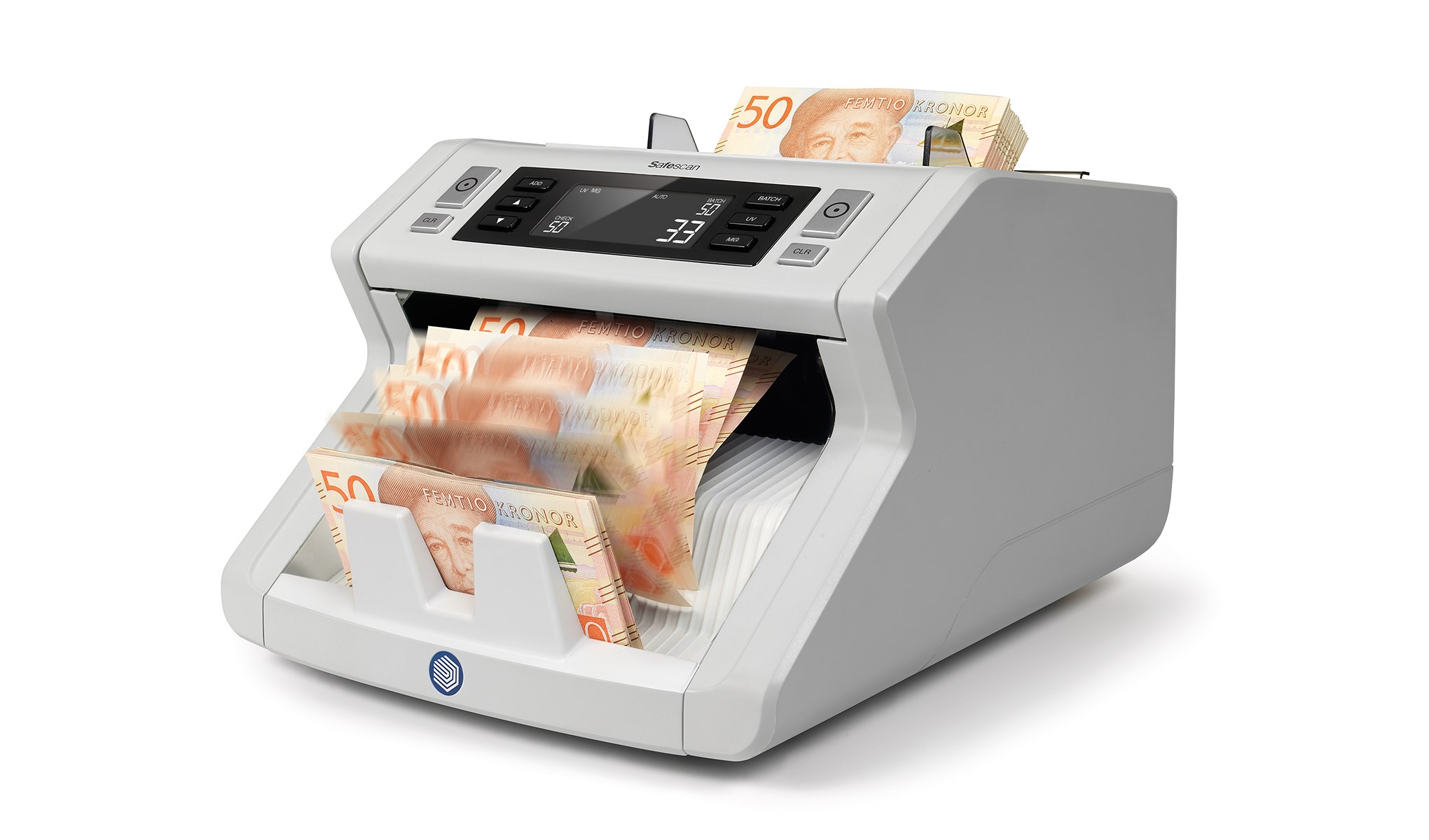 Safescan 2250:n takaa syötettävään suppiloon mahtuu 300 seteliä, jotka se laskee tarkasti jopa 1 000 setelin minuuttinopeudella.