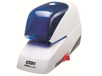 Sähkönitoja Rapid 5050E sin/valk. 50 arkkiaPatentoitu niittisäiliötekniikka, jossa niitit ovat erillisessä kasetissa. Kuluvat osat vaihdetaan uuden niittikasetin mukana. Säädettävä nidontasyvyys max 50 mm. Niitit vähissä -ilmaisin. Niittikasetti R5050E, koodi 251036 Mitat L176xK209xS417 mm.