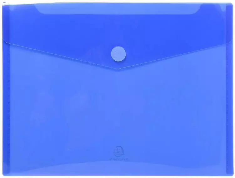 Säilytyskuori läpikuultavasta polypropyleenimuovista. Tarrakiinnitys. Muovin paksuus 0,2 mm. Mitat 24 x 31,5 cm, A4. Sininen.