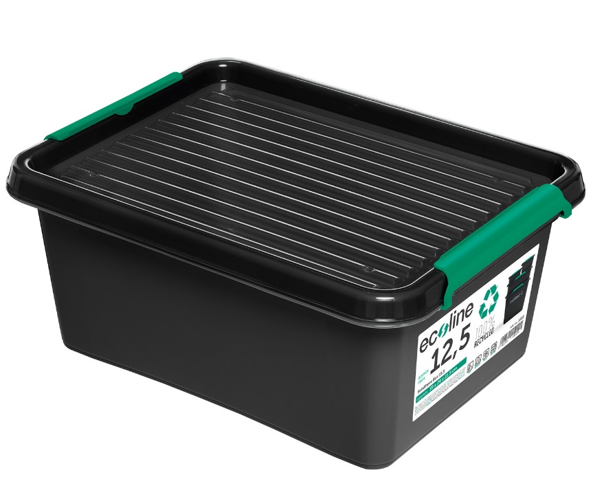 Säilytyslaatikko 12,5L kannella Ecoline. Klipsikiinnitys, kierrätysmuovi.