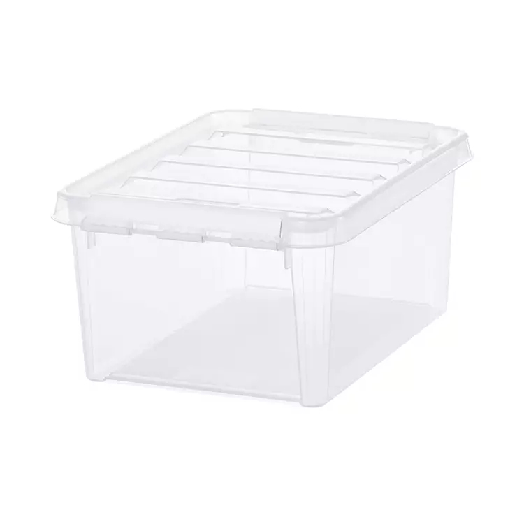 Monipuolinen säilytyslaatikko kaikenlaisten tavaroiden säilytykseen. Vahvat, kierrätetystä muovista valmistetut valkoisen väriset sulkijat pitävät kannen tiukasti kiinni. Laatikot pinoutuvat sisäkkäin ja kannen kanssa päällekkäin. Laatikko soveltuu myös ruoan säilytykseen. Valmistettu Ruotsissa. Koko 34x25x16 cm. Tilavuus 8L.