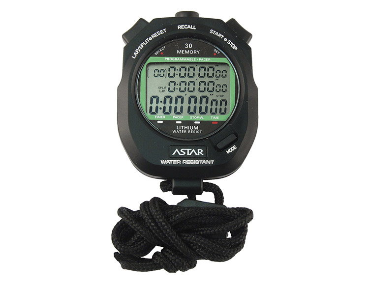 Suurinäyttöinen sekuntikello 30 muistipaikalla. Sadasosan tarkkuudella mittaava kello mahdollistaa tarkan ajanoton koko ryhmälle. Näyttää myös normaalisti kellonajan. Väri musta. 1 vuoden takuu.
