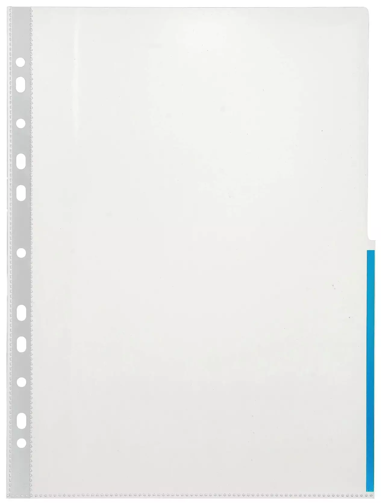 Läpinäkyvät A4-kokoiset taskut monirei'ityksellä ja värikoodilla. Avoin yläosa ja puoliväliin oikea puoli. Valmistettu ympäristöystävällisestä polypropeenista. Taskut ovat kopiosuojattuja ja niihin mahtuu enintään 25 arkkia (80 gsm).
