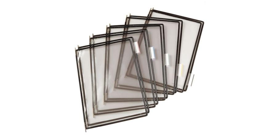 Tarifold lisätasku, avoin yläreuna, läpinäkyvä, musta kehys, 10 taskua