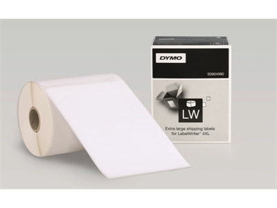 Tarra Dymo LW 4XL suuri 104x159mm lähetystarraErikoissuuri lähetystarra, valkoinen paperi, pysyvä. Tarran koko 104 x 159 mm. 220 tarraa/rulla, 1 rulla/laatikko. Sopii vain Dymo LabelWriter 4XL.