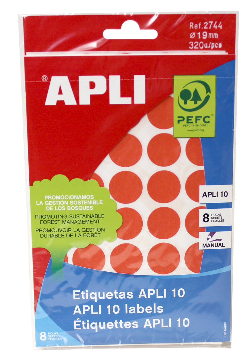 Tarraetiketti 19mm APLI pyöreä punainen 320kpl