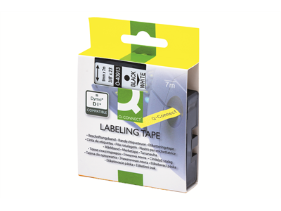 Tarrakasetti Q-Connect 40913 9mm val/mus on yhteensopiva Dymon D1 tarranauhojen kanssa ja se sopii LabelManager, Dymo LabelWriter 450 Duo sekä Dumo MobileLabeler -tarratulostimiin. tarratulostimissa käytettävä, itsekiinnittyvä merkintäteippi. Merkintäteippiä voidaan käyttää lukuisiin kohteisiin tasaisille ja puhtaille pinnoille mm. työpaikalla, kotona, keittiössä, arkistoinnissa, varastossa ja sähkökaapeissa.