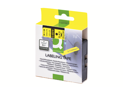 Tarrakasetti Q-Connect 45018 12mm kelt/mus on yhteensopiva Dymon D1 tarranauhojen kanssa ja se sopii LabelManager, Dymo LabelWriter 450 Duo sekä Dumo MobileLabeler -tarratulostimiin.
