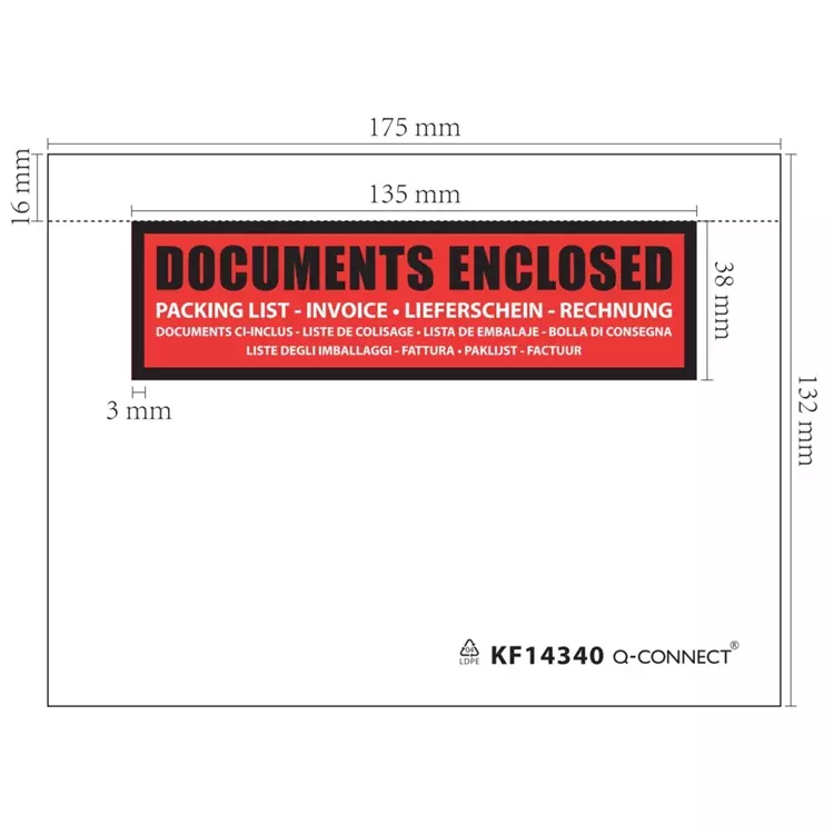 Tarrapussi Q-Connect C6 lähetysluettelo/1000 Tarrapussin mitat 175mm x 132mm. 1000 kpl/ltk. Tuotteella FSC merkki.