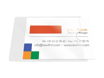Liitä käyntikorttisi esim. tarjouksiin tai esityksiin. Q-Connect itseliimautuvassa käyntikorttitaskussa kortti säilyy siistinä eikä katoa.