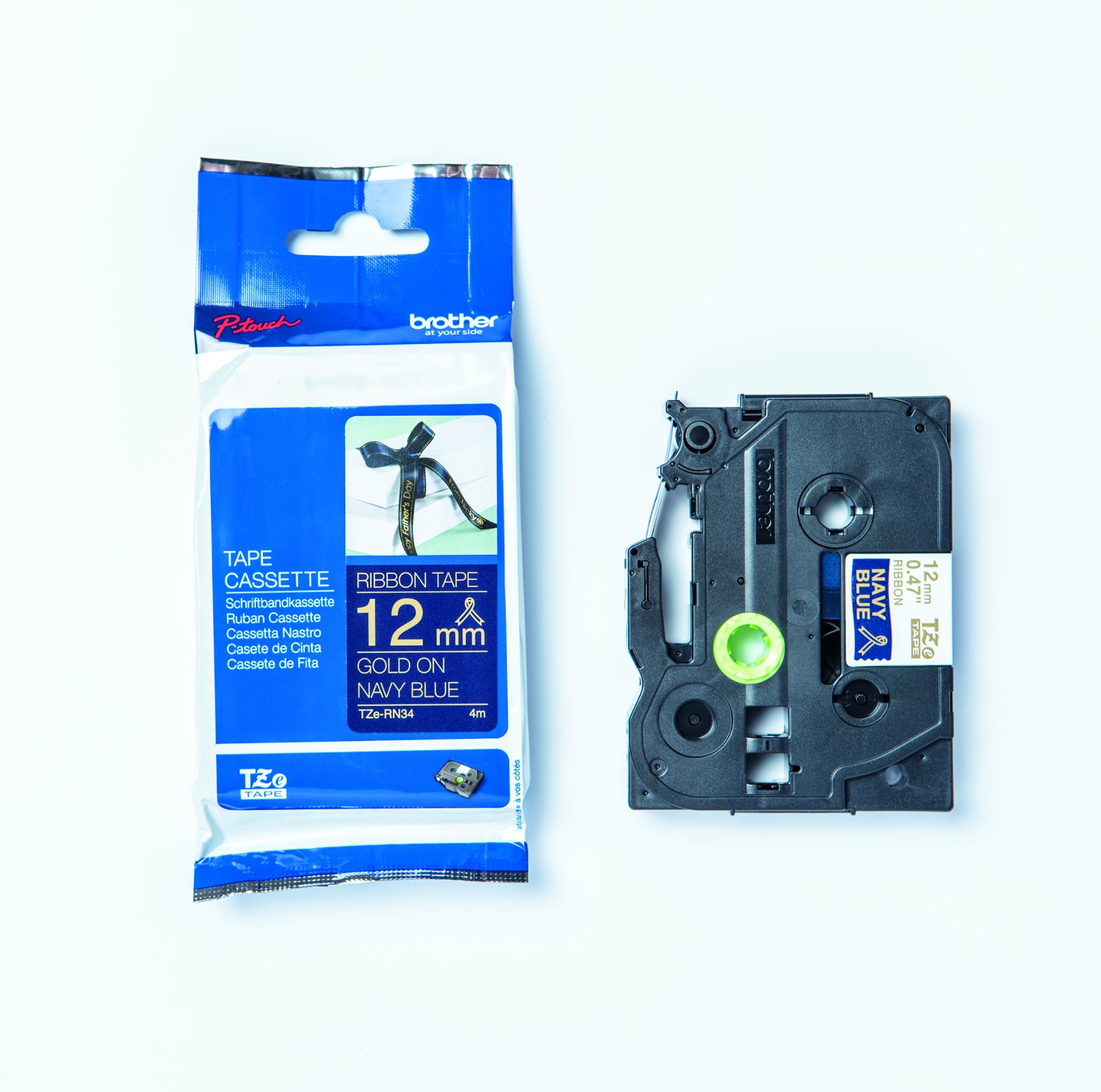 Tekstiilinauha Brother TZe-RN34 12mm satiini sininen/kulta