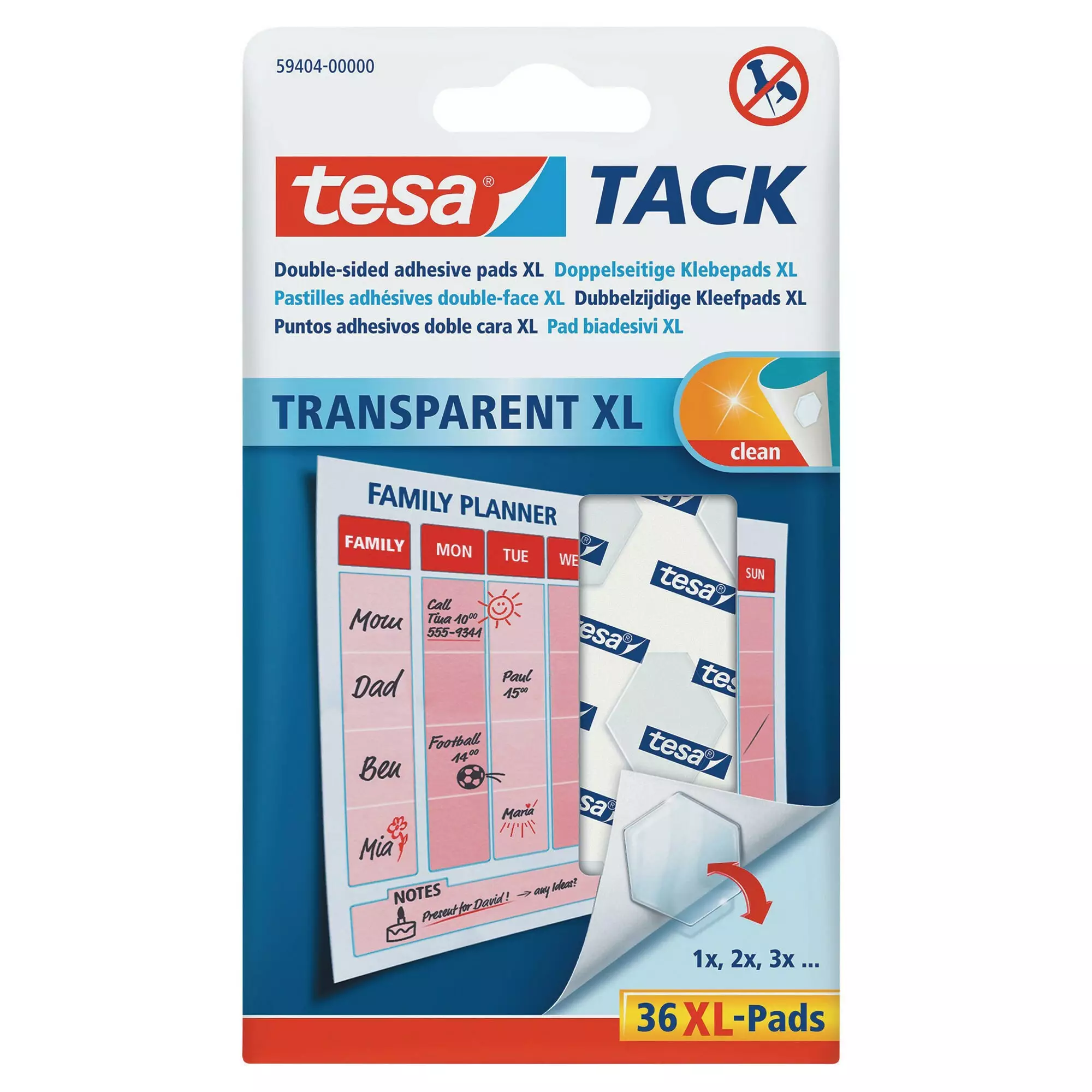 Tesa® kiinnitystarra XL uudelleenkäytettävä kirkas, 1 kpl=36 tarraa