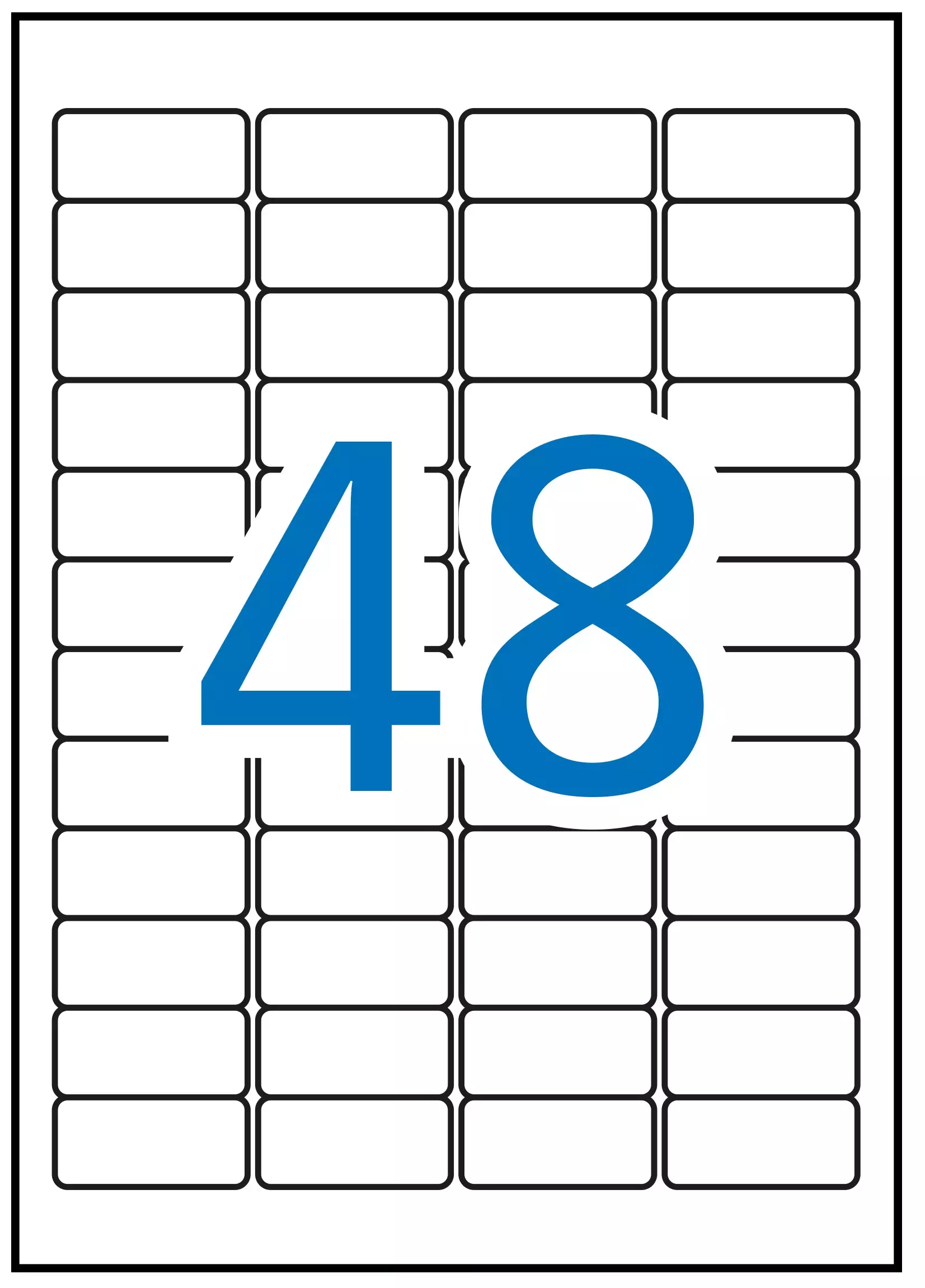 A4 arkki on jaettu 48 tarraan, joiden mitat ovat 45,7 x 21,2 mm.