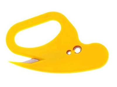 Turva/kalvoleikkuri keltainenKätevä ja pienikokoinen turvaleikkuri pakkauskartonkien ja -kalvojen, ristisiteiden ja pakettien avaamiseen.