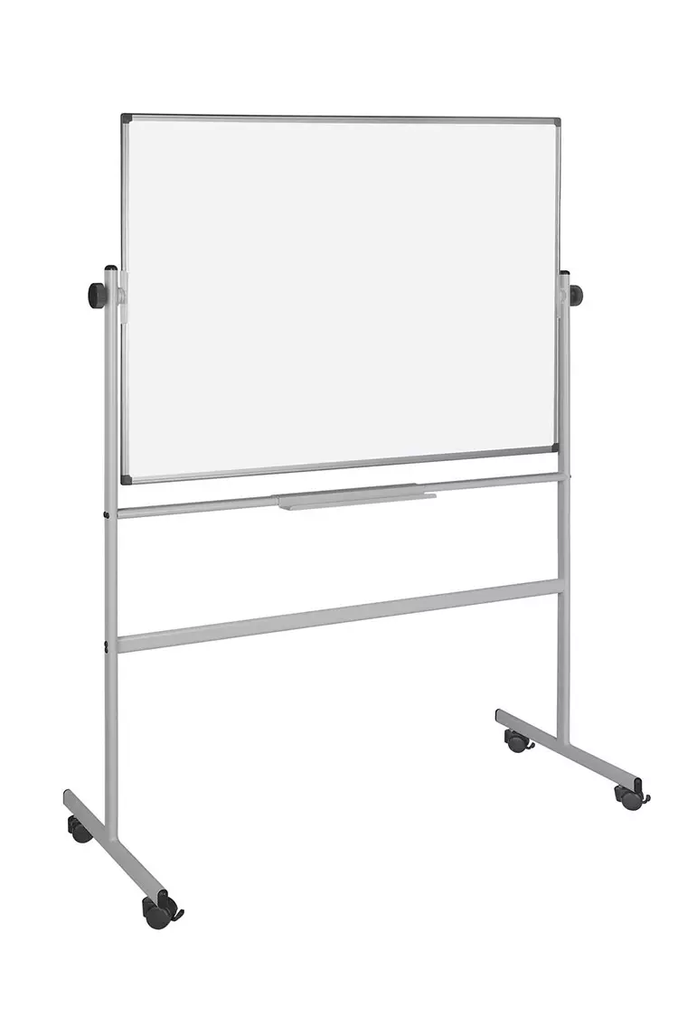 Kaksipuoleinen valkotaulu pyörillä. Rungossa lukitus. Magneettipinta, lakattu metalli. 4 lukittavaa pyörää. Kynäkouru. Taulun koko 150 x 120 cm. Sisältää kiinnitystarvikkeet. Takuu 2 v.