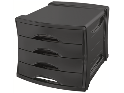 Vetolaatikosto jossa on 4 helposti liukuvaa laatikkoa stopparilla, joka estää laatikon putoamisen Laatikon edessä tila etiketille sisällön tunnistamiseksi Yksityisyyttä suojaava suljettu etuosa ja aukaisua helpottava sormikolo Liukumista estävät kumijalat, tilaa säästäen pinottavissa 3 laatikostoa päällekkäin. Täydellisesti yhteensopiva Esselte Europost ja VIVIDA tuotteiden kanssa. Mitat 285 x 245 x 372