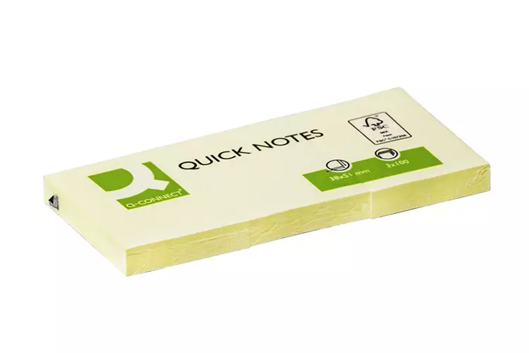 Viestilappu Q-Connect 38X51mm FSC keltainen 3 nidettä