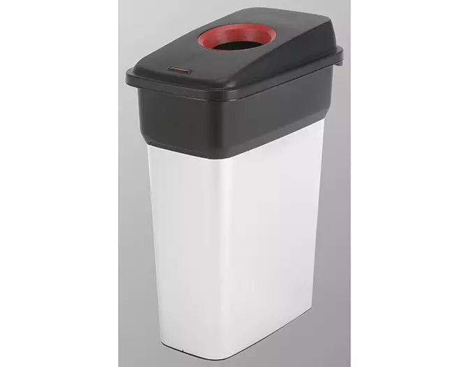 Kestävä muovirakenne, lajittelukanessa pyöreä suuaukko. Musta/punainen. LxPxK: 29x49x9cm.
