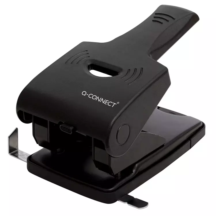 Q-Connect-voimalävistäjä on tarkoitettu isojen paperimäärien lävistämiseen. Lävistäjässä on kestävä metallirunko ja kahvan lukitus. Se on kaksireikäinen ja sen kapasiteetti on 65 arkkia. Paperiohjaimen avulla reiät tulevat aina kohdilleen. Koko P21,2 x L11,7 x K10 cm. Lävistäjän muoviosat ovat ABS-muovia. Väri musta.