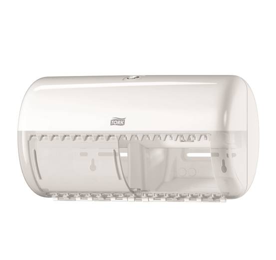 Tork Twin T4 on Elevation-sarjan annostelija perinteiselle wc-paperirullalle. Annostelija sopii parhaiten vähäisten käyttäjämäärien saniteettitiloihin, joissa on pienempi ylläpitotarve. Kätevällä repäisynauhalla varustettuun annostelijaan mahtuu kaksi rullaa kerrallaan. Järjestelmä: Tork T4 Mitat: 15,8 x 15,3 x 28,6 cm Materiaali: muovi Väri: valkoinen Tork-tuotenumero: 557000