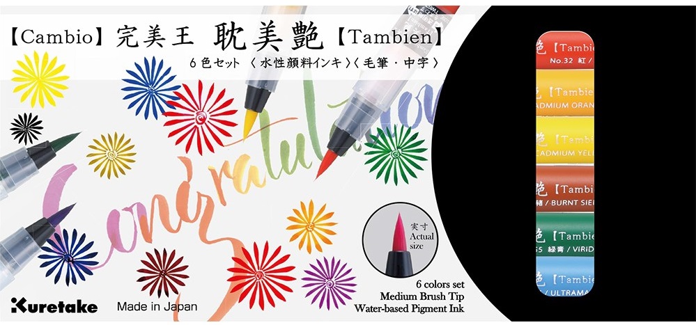 Zig Cambio Tambien 6-osainen sivellinkynäsarja A. Harjakyniä on helppo käyttää kirjoittamiseen tai värittämiseen. Erinomainen kynä maalaamiseen,kirjeisiin/esitteisiin. Uusi teknologia tekee kirjoittamisesta sujuvaa ja vaivatonta. Keskikokoinen harjaspää. Vesipohjainen pigmentti.
