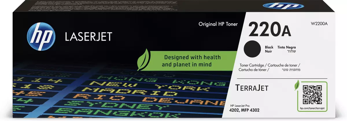HP laserväri 220A / W2200A musta. Kapasiteetti 2000 sivua 5% peitolla. Yhteensopivuus: HP LaserJet Pro 4202, MFP 4302.