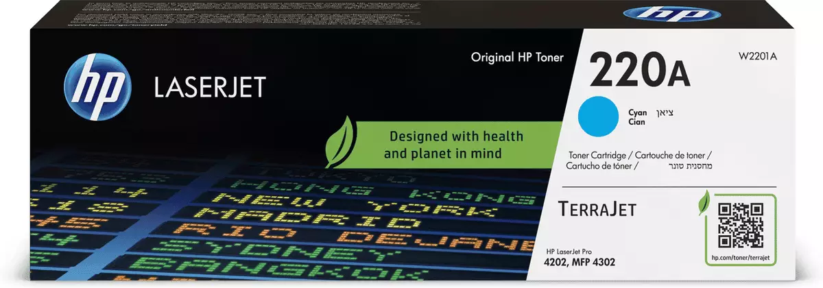 HP laserväri 220A / W2201A cyan. Kapasiteetti 1800 sivua 5% peitolla. Yhteensopivuus: HP LaserJet Pro 4202, MFP 4302.