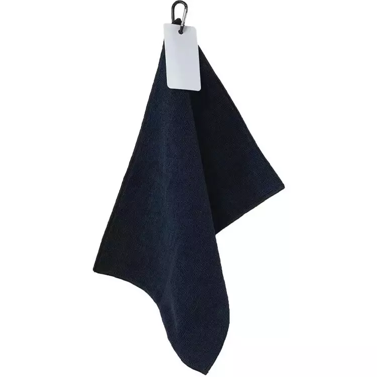 Golfpyyhe karabiinihakalla, painatus "hangtagsiin". Valmistettu 100% mikrokuidusta.