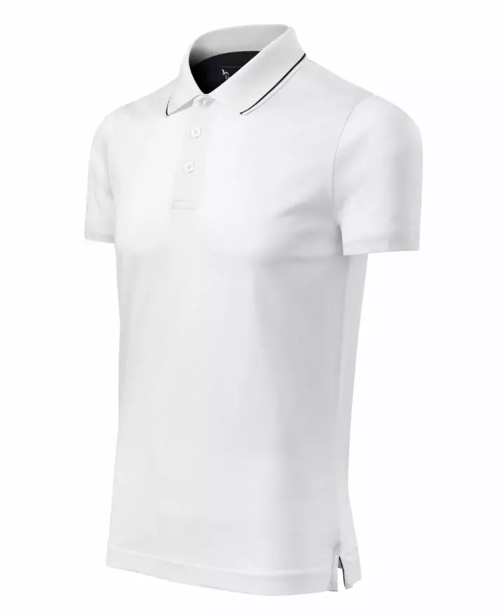 Single Jersey, 100 % merseroitua puuvillaa leikattu sivusaumoilla 1:1 joustinneulottu kaulus kontrastiraidalla 3 nappia kuorikankaan värissä halkiot sivusaumoissa kontrastiteipillä sisäpääntie kontrastiteipillä olkasaumojen kiinnitys merserointikäsittelyllä käsitelty puuvilla
