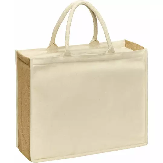 Päämateriaali: 100% puuvilla. Sisäosat: alumiini. Sivuosien materiaali: 100% juutti.
