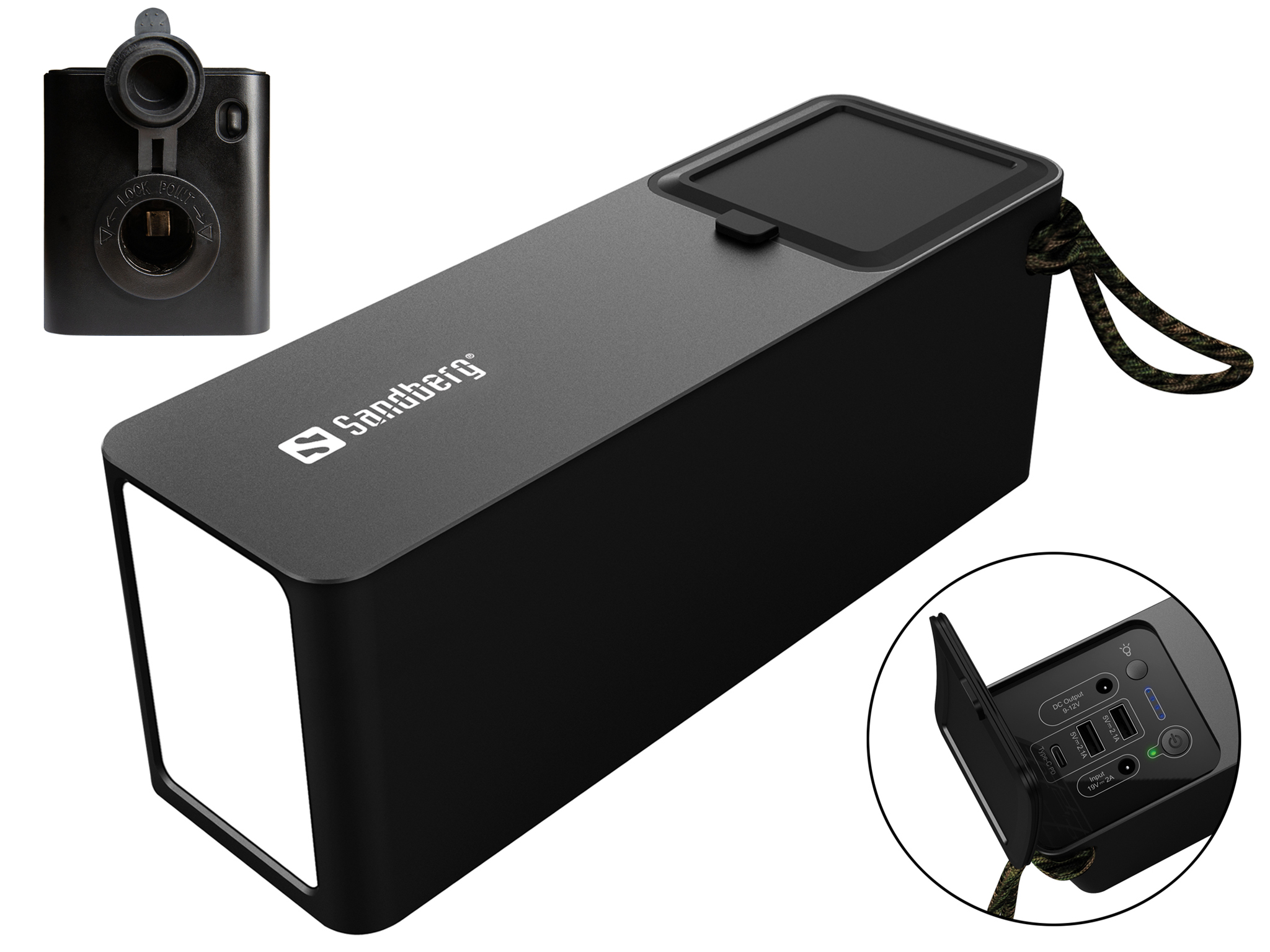 Sandberg Survivor Camper Powerbank 42000 on kattava latausasema kaikille laitteille, kun lähin pistorasia on kilometrien päässä. Sen valtava kapasiteetti riittää älypuhelimelle jopa kahdeksi viikoksi, ja lisäksi siinä on erinomainen suorituskyky ja monenlaisia latausliitäntöjä. Varavirtalähteessä on kaksi perinteistä USB-A-liitäntää tavallisille USB-laitteille sekä USB-C PD 45 W -liitäntä USB-C-laitteille, kuten joillekin kannettaville tietokoneille. Lisäksi siinä on tehokas 120 W / 12 V liitäntä leirintävarusteille, esimerkiksi jääkaapille tai kahvinkeittimelle. Varavirtalähde on valmistettu kestävästä ja vesitiiviistä IP64-hyväksytystä materiaalista, ja siinä on tehokas punainen/valkoinen valo.