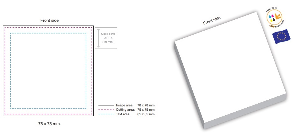 Painettu viestilappu liimareunalla. Koko 75x75mm. 50 arkkia/nide. Valmiista aineistosta: Toimitusaika n. 3 viikkoa hyväksytystä vedoksesta.