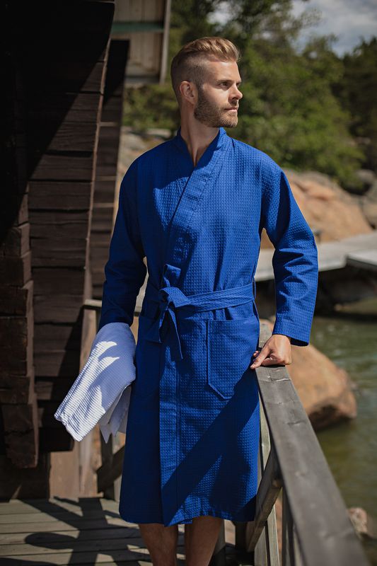 VOHVELI KYLPYTAKKI • Materiaali: 100 % vohvelikudottua puuvillaa • Paino: 250 g/m² • Pitkät hihat • Kaksi taskua • Vyölenkit ja vyö • Niskassa ripustuslenkki • Suositellaan pesua... Lue lisää
