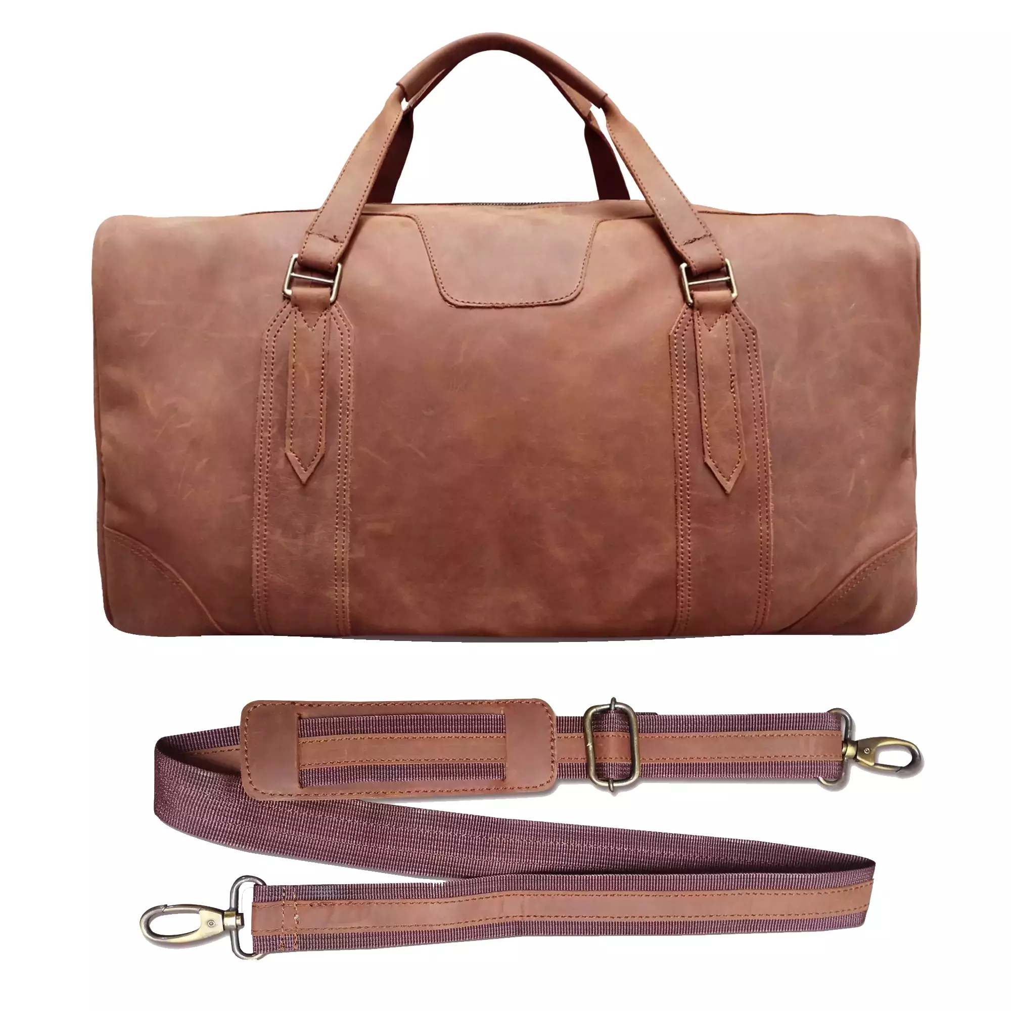Vahapintainen puhvelinmokkanahkainen weekend bag.